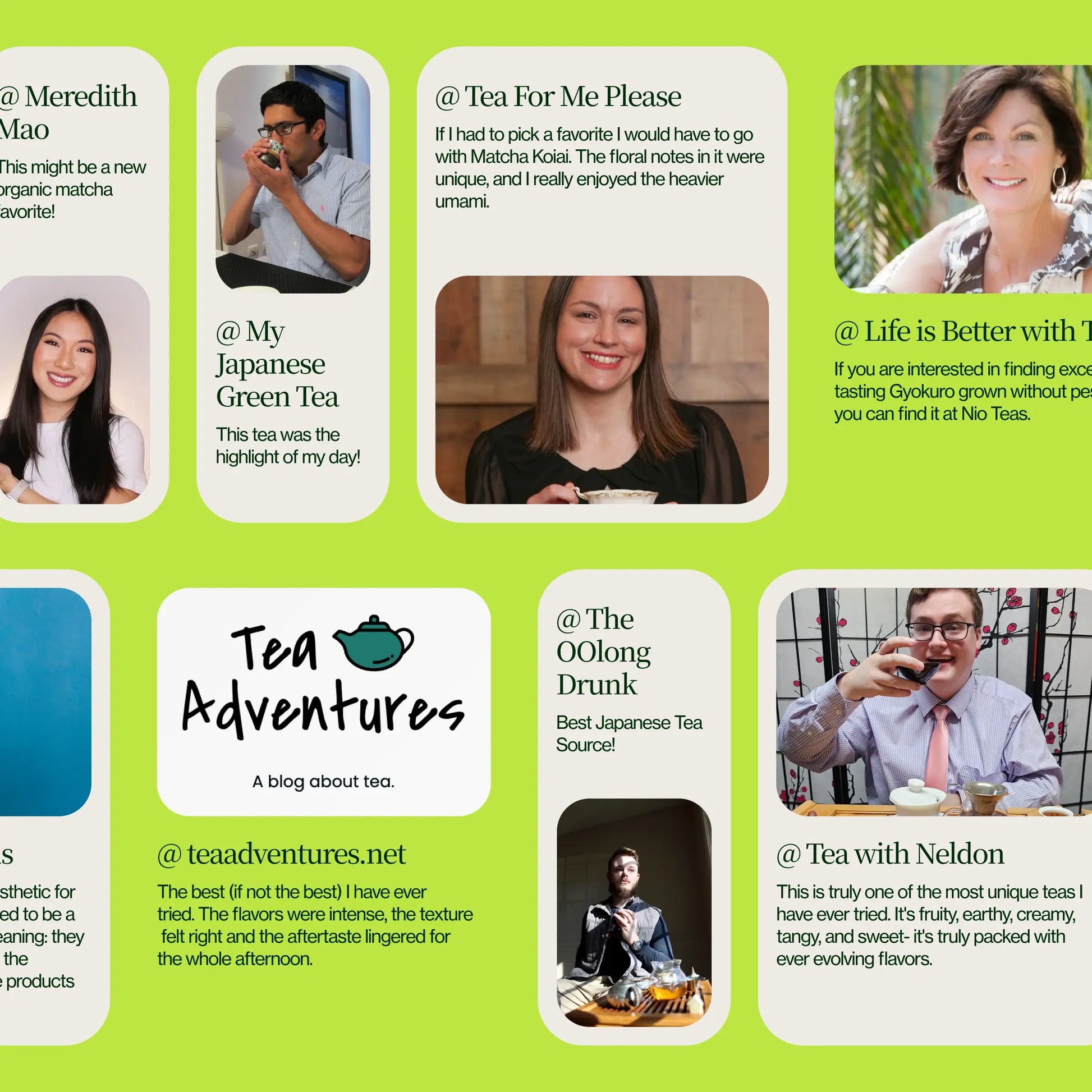 Varje matcha kommer direkt från sex kända japanska regioner: Asamiya, Kyoto, Uji, Shizuoka, Kagoshima och Kirishima. Detta urval från nio små familjejordbruk garanterar mångfald i smak och ursprung, där varje te är framställt med hjälp av generationers expertis.